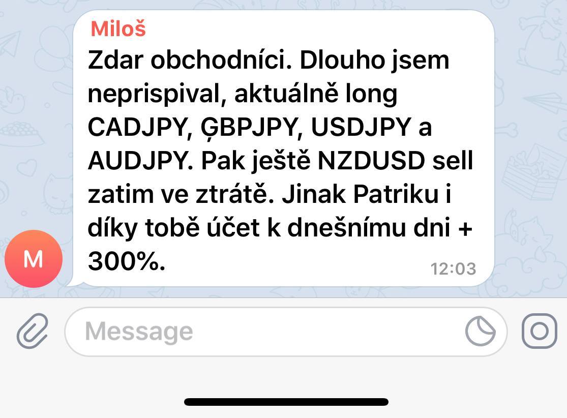 Uprostřed týdne do skupiny pošlu UPDATE ohledně aktuální situaci na trzích. Projdeme si taky naše otevřené pozice a podíváme se na horké trhy, které byste měli sledovat.