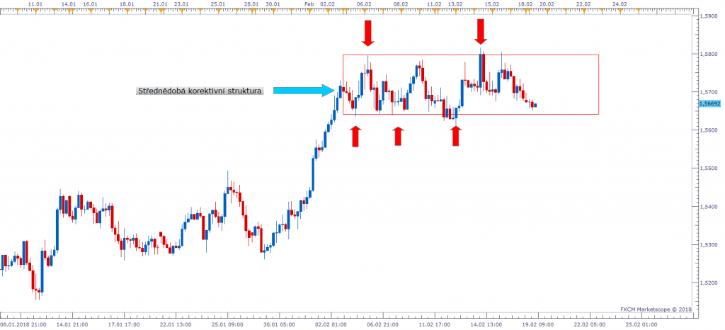 Už 2 týdny je teď EURAUD uzavřený v korektivní struktuře. Extrémy této struktury byly minulý týden testovány agresivně a mohli jsme vidět několik menších falešných breaků na obou stranách.