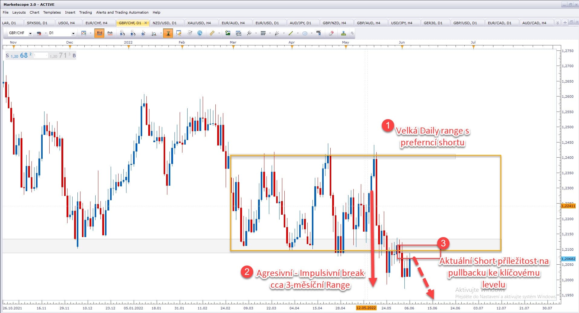 V Tomto případě bychom opět postupovali s jednoduchostí a jednoduše bychom shortovali návrat do bývalé velké Range z Daily (Velmi podobně, jako je možné aktuálně shortovat návrat do weekly range na GBPCHF).