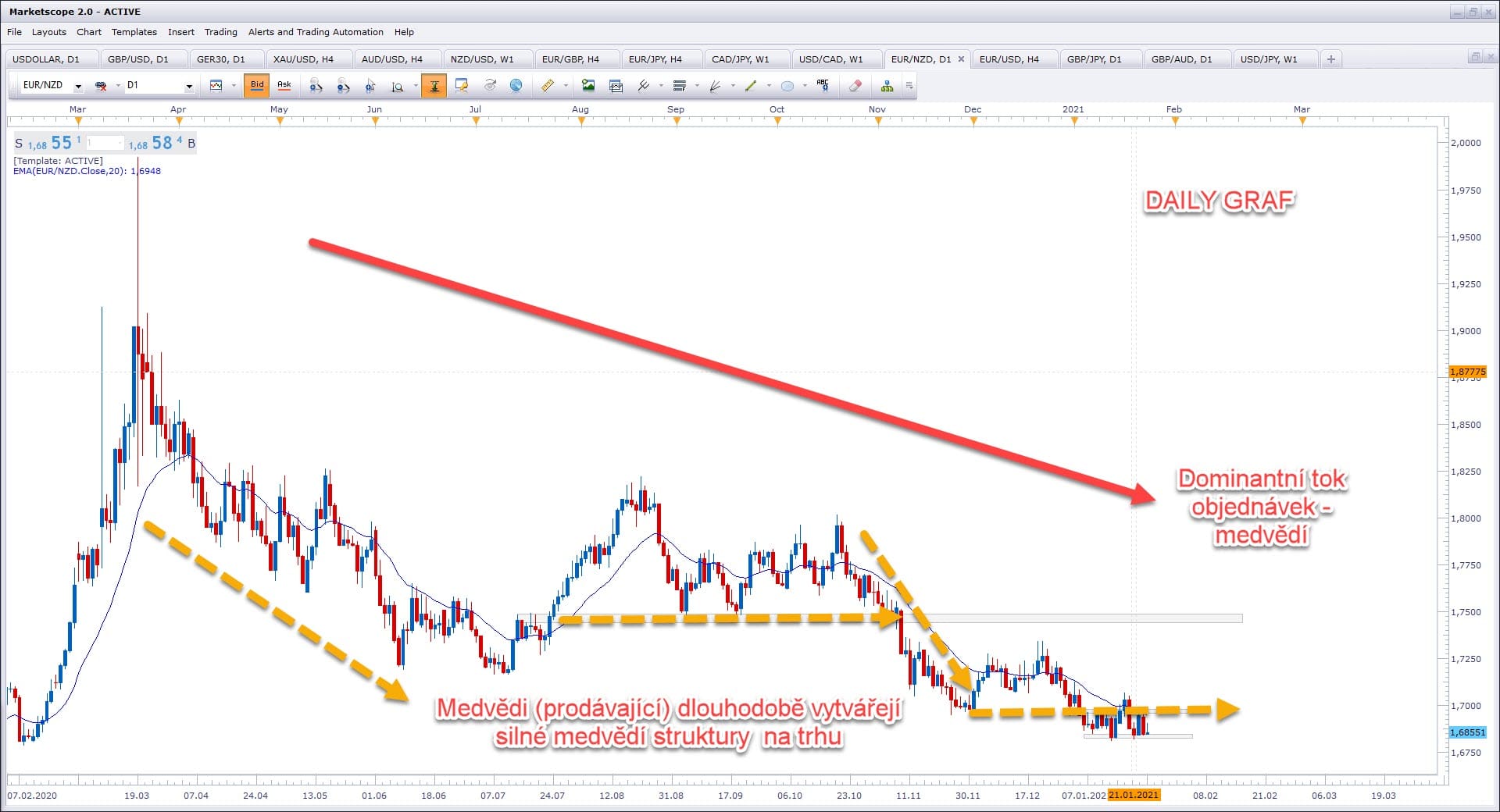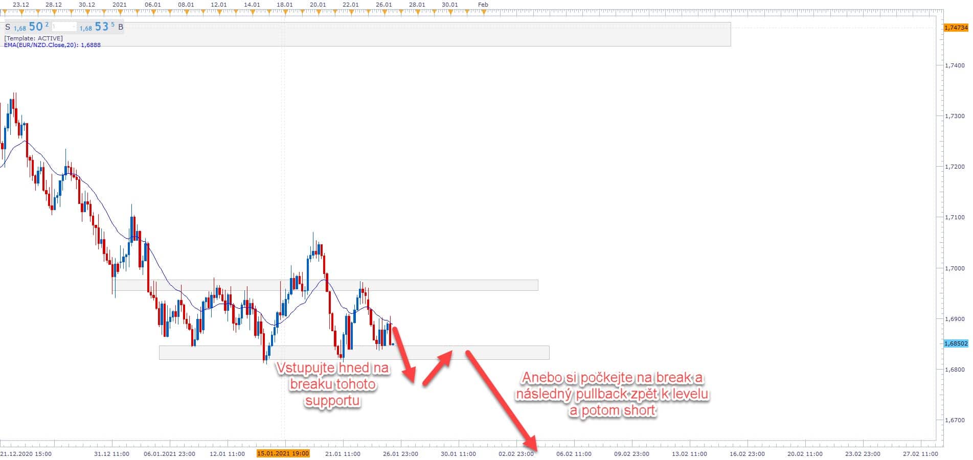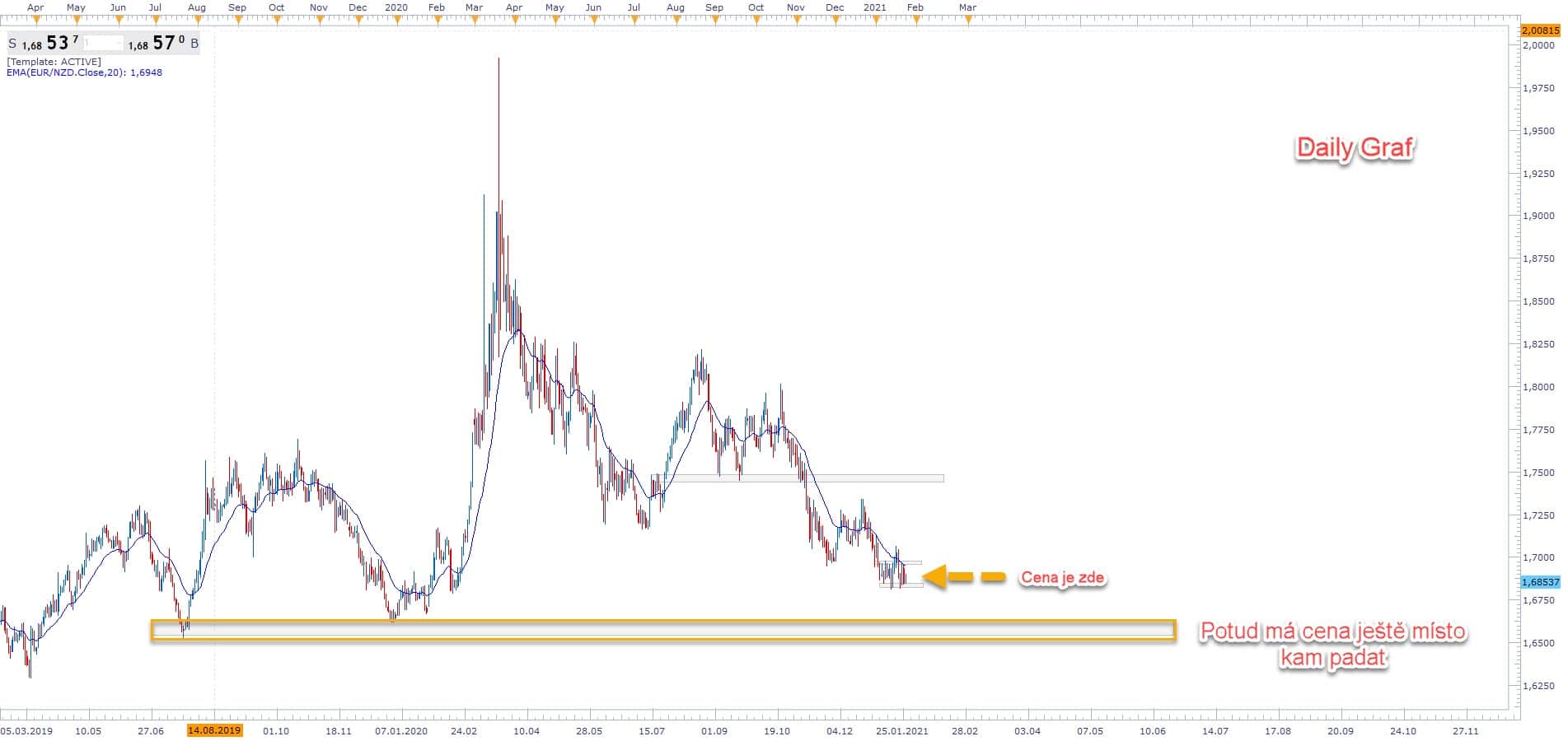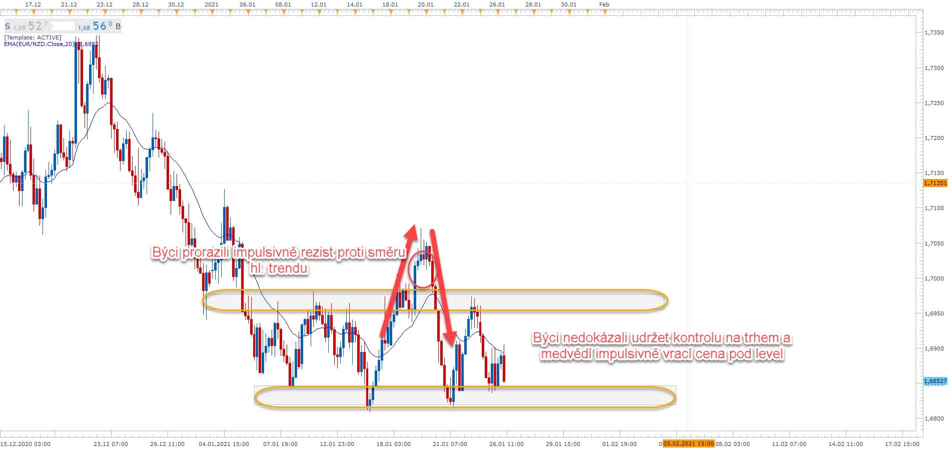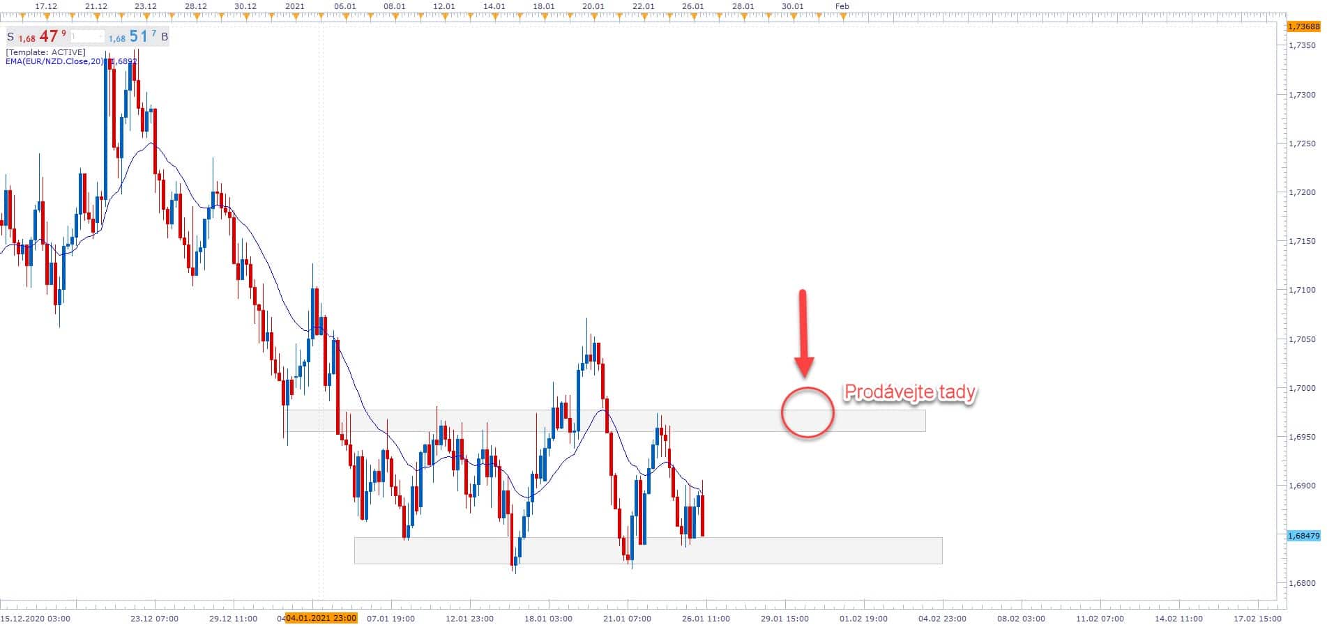 Dnešní článek bude zároveň i pokročilou lekcí na Price Action analýzu a trading - Pro tuto lekci nám poslouží graf EURNZD 26.1.2021